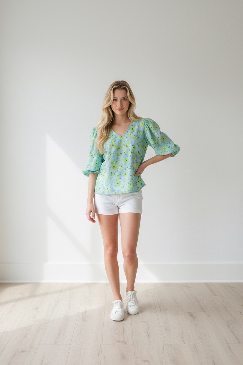 Free/quent - Blouse - Blauw-groen