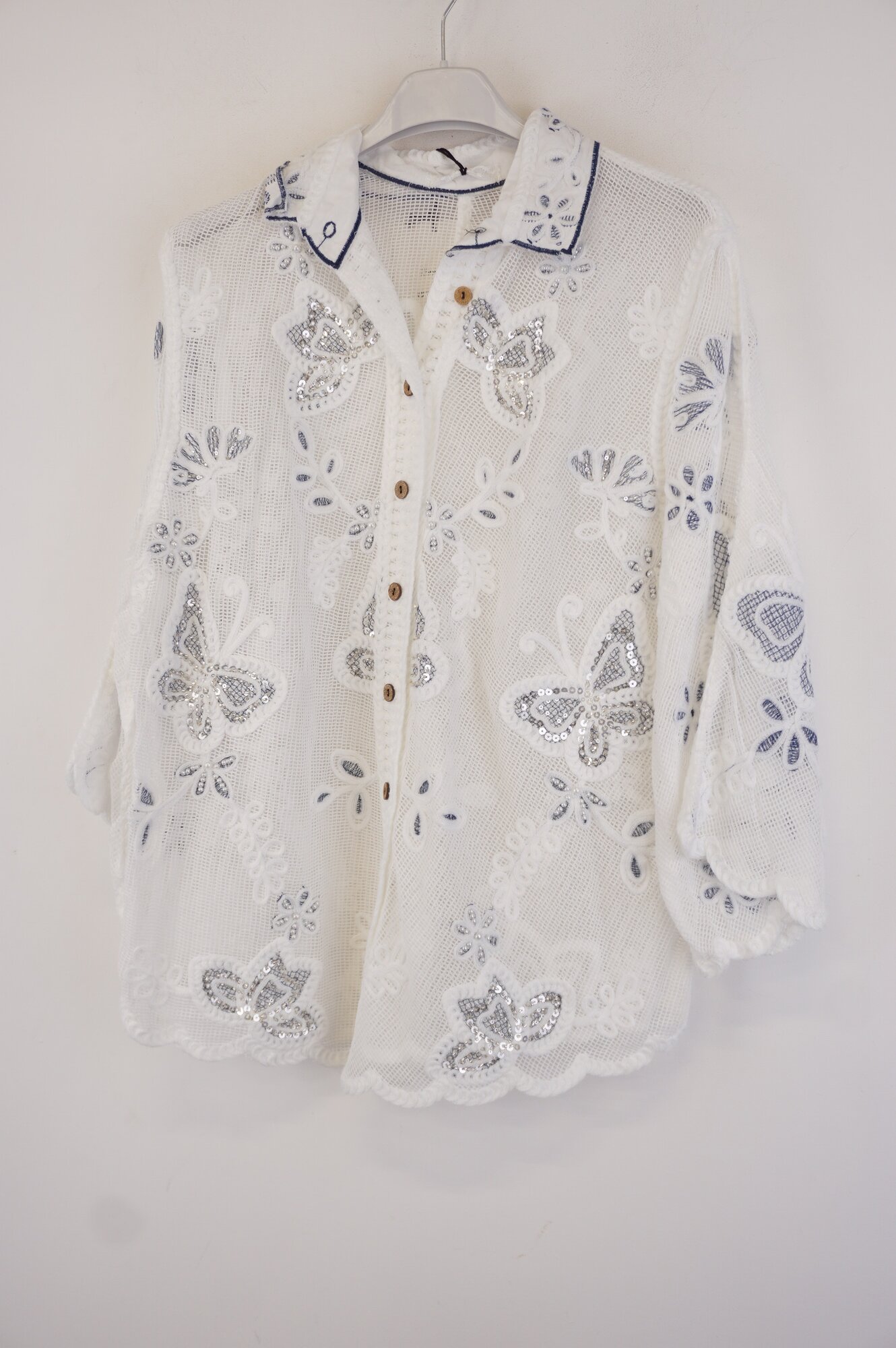 Garde-robe - Blouse - Wit-blauw